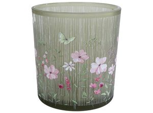 Telysglass Grønn med blomster 7,5x8 cm. Pris pr stk