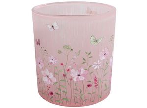 Telysglass Rosa med blomster 7,5x8 cm. Pris pr stk